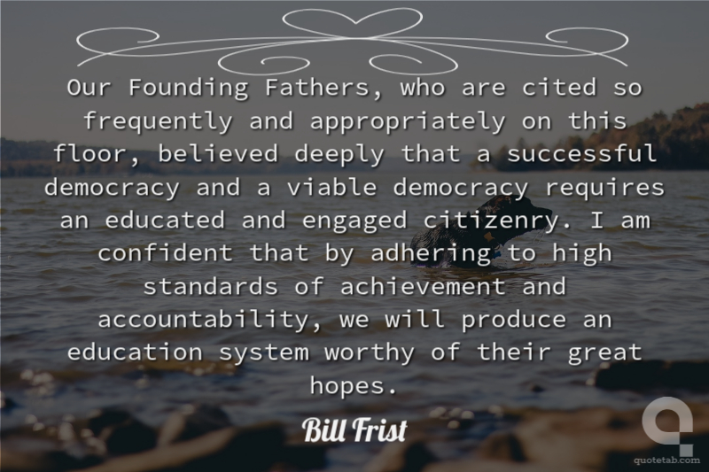 Our Founding Fathers, who are cited so frequently and appropriately on this floor, believed deeply that a successful democracy and a viable democracy requires an educated and engaged citizenry. I am confident that by adhering to high standards of achievement and accountability, we will produce an education system worthy of their great hopes.