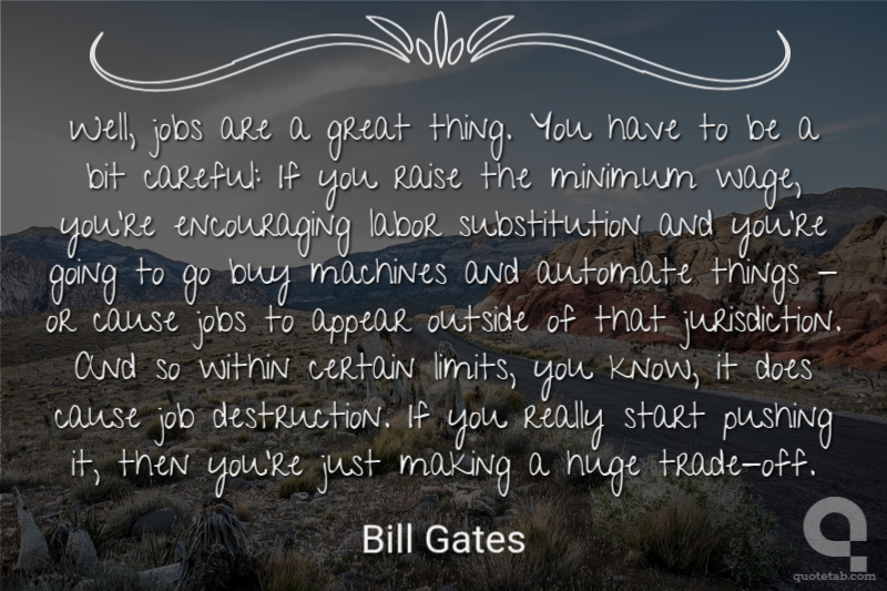 Well, jobs are a great thing. You have to be a bit careful: If you raise the minimum wage, you’re encouraging labor substitution and you’re going to go buy machines and automate things - or cause jobs to appear outside of that jurisdiction. And so within certain limits, you know, it does cause job destruction. If you really start pushing it, then you’re just making a huge trade-off.