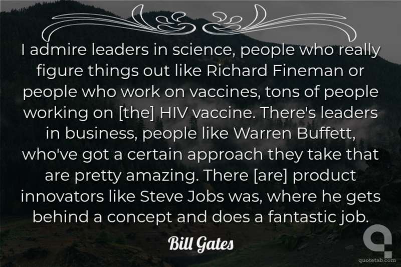 I admire leaders in science, people who really figure things out like Richard Fineman or people who work on vaccines, tons of people working on [the] HIV vaccine. There's leaders in business, people like Warren Buffett, who've got a certain approach they take that are pretty amazing. There [are] product innovators like Steve Jobs was, where he gets behind a concept and does a fantastic job.
