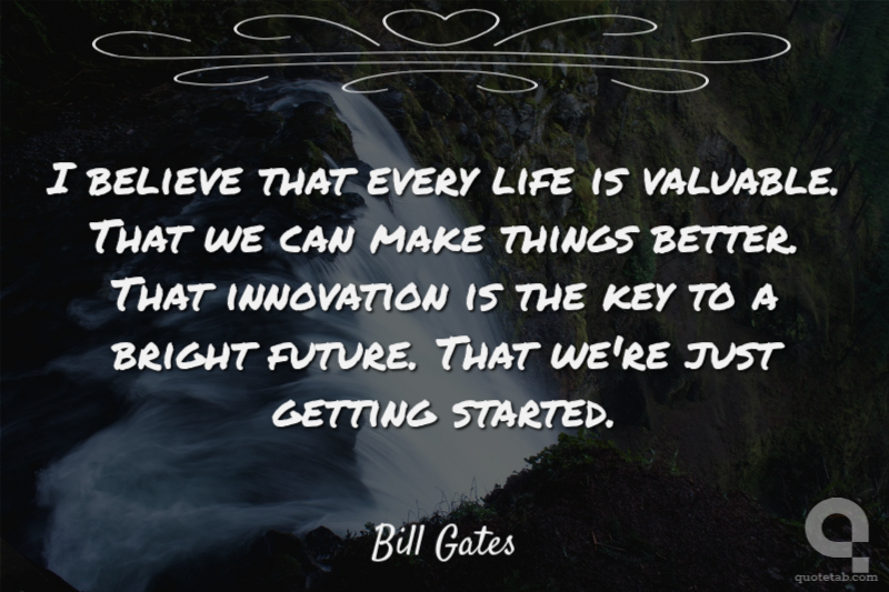 I believe that every life is valuable. That we can make things better. That innovation is the key to a bright future. That we're just getting started.