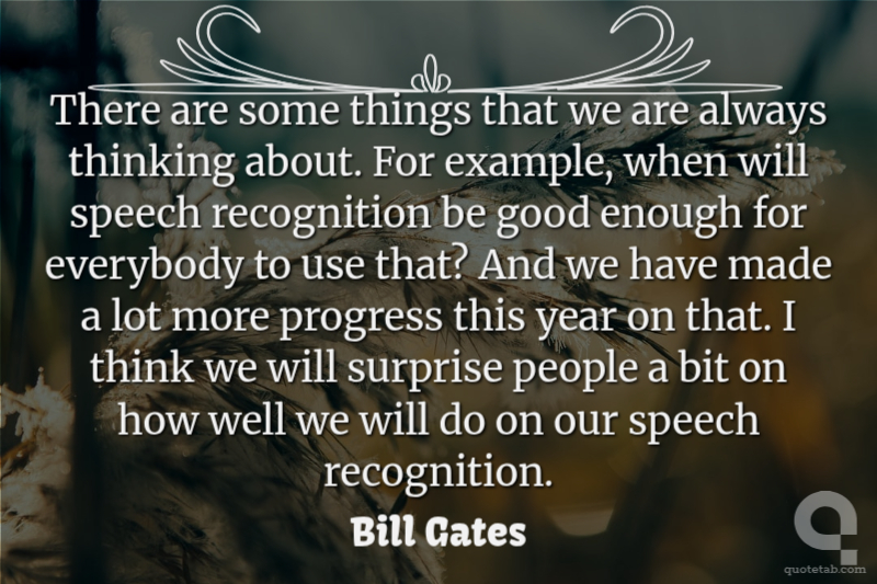 There are some things that we are always thinking about. For example, when will speech recognition be good enough for everybody to use that? And we have made a lot more progress this year on that. I think we will surprise people a bit on how well we will do on our speech recognition.