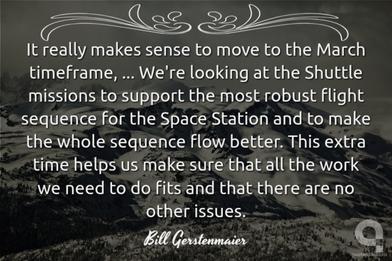 It really makes sense to move to the March timeframe, ... We're looking at the Shuttle missions to support the most robust flight sequence for the Space Station and to make the whole sequence flow better. This extra time helps us make sure that all the work we need to do fits and that there are no other issues.