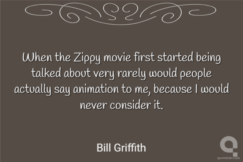 When the Zippy movie first started being talked about very rarely would people actually say animation to me, because I would never consider it.