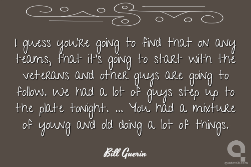 I guess you're going to find that on any teams, that it's going to start with the veterans and other guys are going to follow. We had a lot of guys step up to the plate tonight. ... You had a mixture of young and old doing a lot of things.