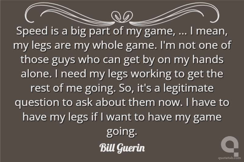 Speed is a big part of my game, ... I mean, my legs are my whole game. I'm not one of those guys who can get by on my hands alone. I need my legs working to get the rest of me going. So, it's a legitimate question to ask about them now. I have to have my legs if I want to have my game going.