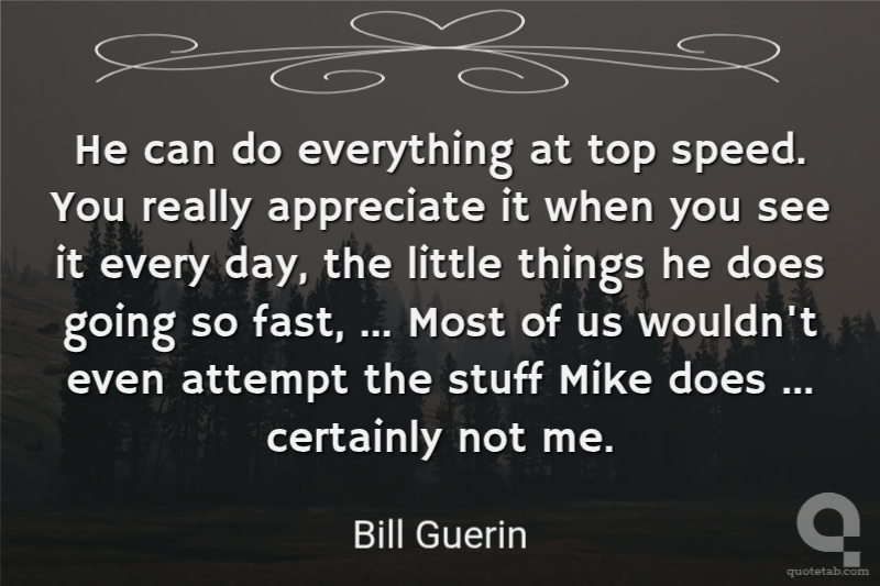 He can do everything at top speed. You really appreciate it when you see it every day, the little things he does going so fast, ... Most of us wouldn't even attempt the stuff Mike does ... certainly not me.
