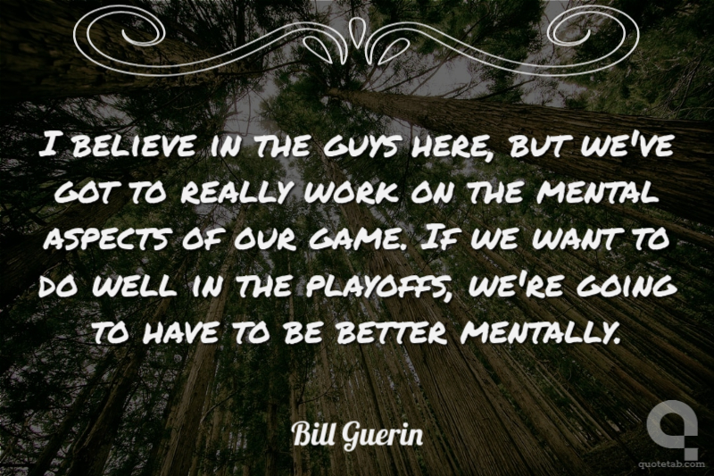 I believe in the guys here, but we've got to really work on the mental aspects of our game. If we want to do well in the playoffs, we're going to have to be better mentally.