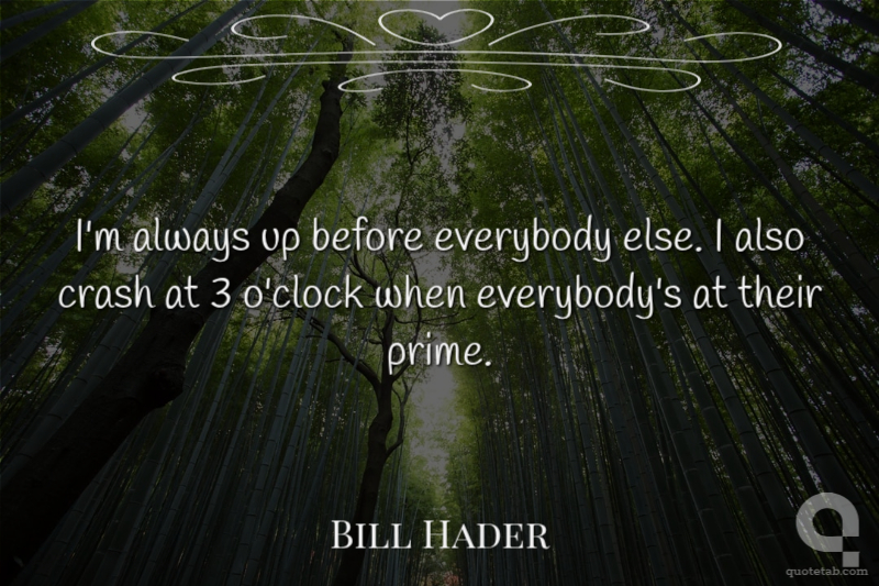 I'm always up before everybody else. I also crash at 3 o'clock when everybody's at their prime.
