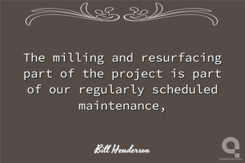 The milling and resurfacing part of the project is part of our regularly scheduled maintenance,
