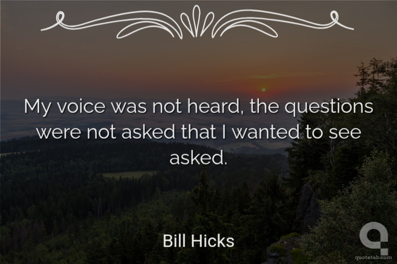 William Melvin "Bill" Hickswas an American stand-up comedian, social critic, satirist, and musician. His material, encompassing a wide range of social issues including religion, politics, and philosophy, was controversial, and often steeped in dark comedy. He criticized consumerism, superficiality and banality within the media and popular culture, which he characterized as oppressive tools of the ruling class that keep people "stupid and apathetic"...