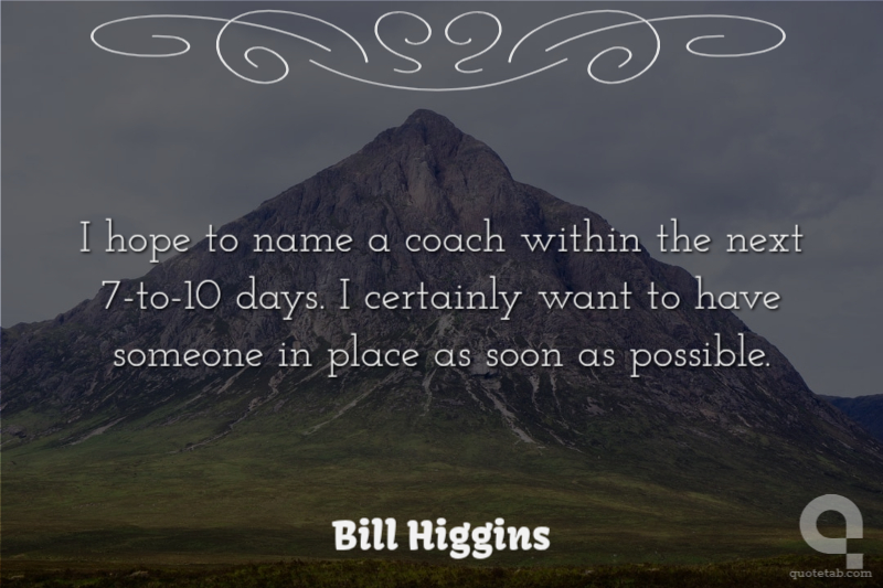 I hope to name a coach within the next 7-to-10 days. I certainly want to have someone in place as soon as possible.