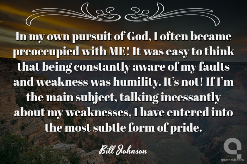 In my own pursuit of God, I often became preoccupied with ME! It was easy to think that being constantly aware of my faults and weakness was humility. It’s not! If I’m the main subject, talking incessantly about my weaknesses, I have entered into the most subtle form of pride.