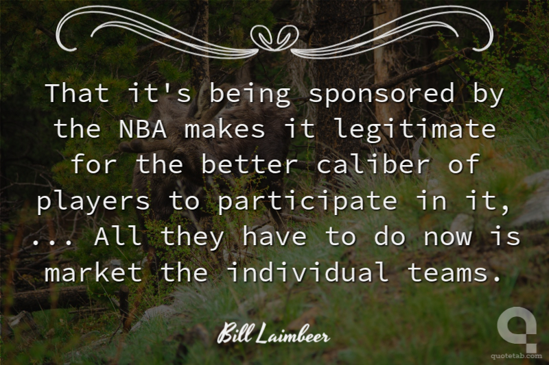 That it's being sponsored by the NBA makes it legitimate for the better caliber of players to participate in it, ... All they have to do now is market the individual teams.