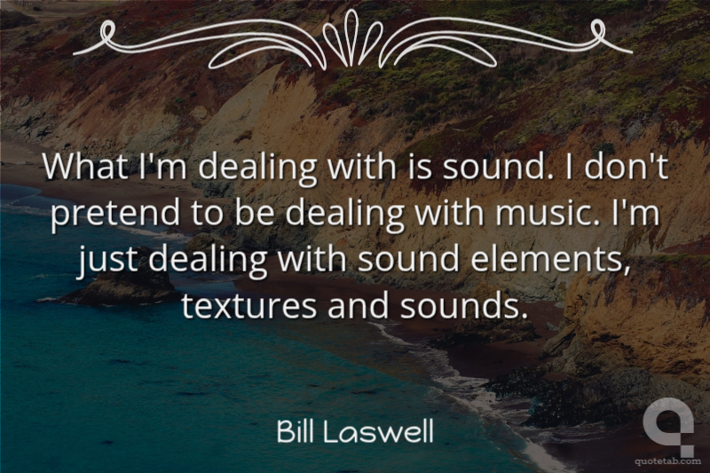 What I'm dealing with is sound. I don't pretend to be dealing with music. I'm just dealing with sound elements, textures and sounds.