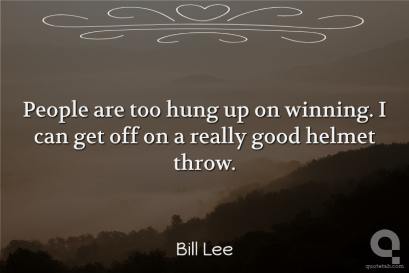 People are too hung up on winning. I can get off on a really good helmet throw.