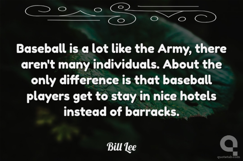 Baseball is a lot like the Army, there aren't many individuals. About the only difference is that baseball players get to stay in nice hotels instead of barracks.