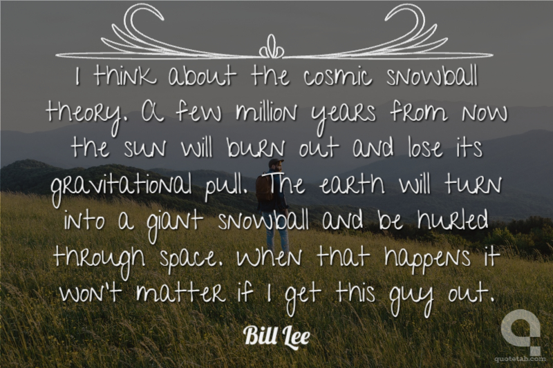 I think about the cosmic snowball theory. A few million years from now the sun will burn out and lose its gravitational pull. The earth will turn into a giant snowball and be hurled through space. When that happens it won't matter if I get this guy out.