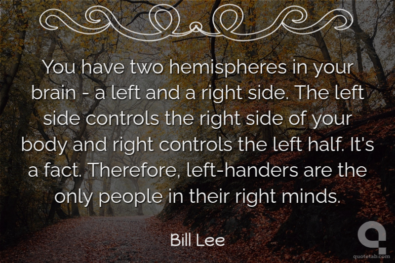 You have two hemispheres in your brain - a left and a right side. The left side controls the right side of your body and right controls the left half. It's a fact. Therefore, left-handers are the only people in their right minds.