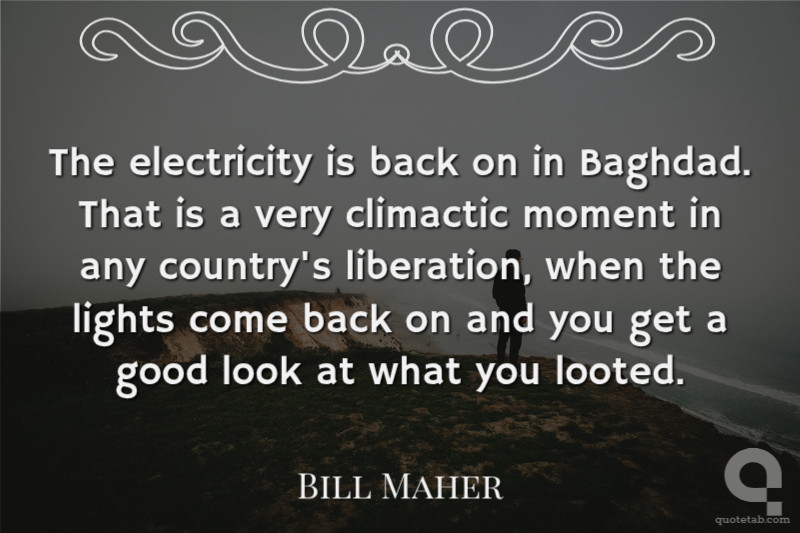 The electricity is back on in Baghdad. That is a very climactic moment in any country's liberation, when the lights come back on and you get a good look at what you looted.