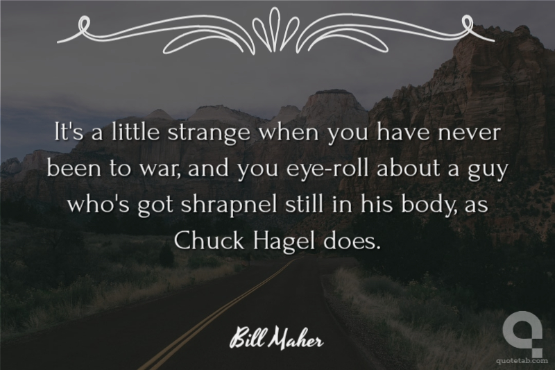 It's a little strange when you have never been to war, and you eye-roll about a guy who's got shrapnel still in his body, as Chuck Hagel does.