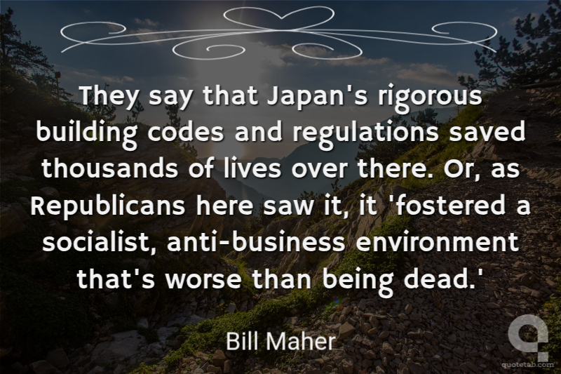 They say that Japan's rigorous building codes and regulations saved thousands of lives over there. Or, as Republicans here saw it, it 'fostered a socialist, anti-business environment that's worse than being dead.'