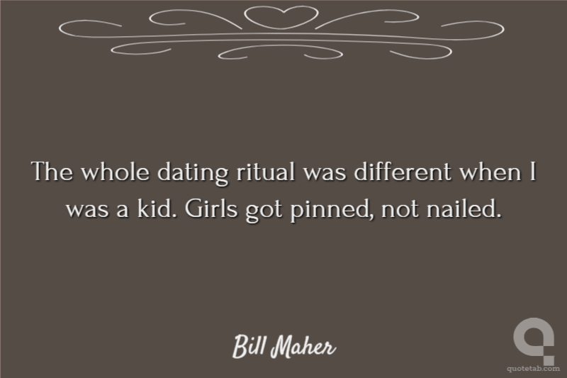 The whole dating ritual was different when I was a kid. Girls got pinned, not nailed.