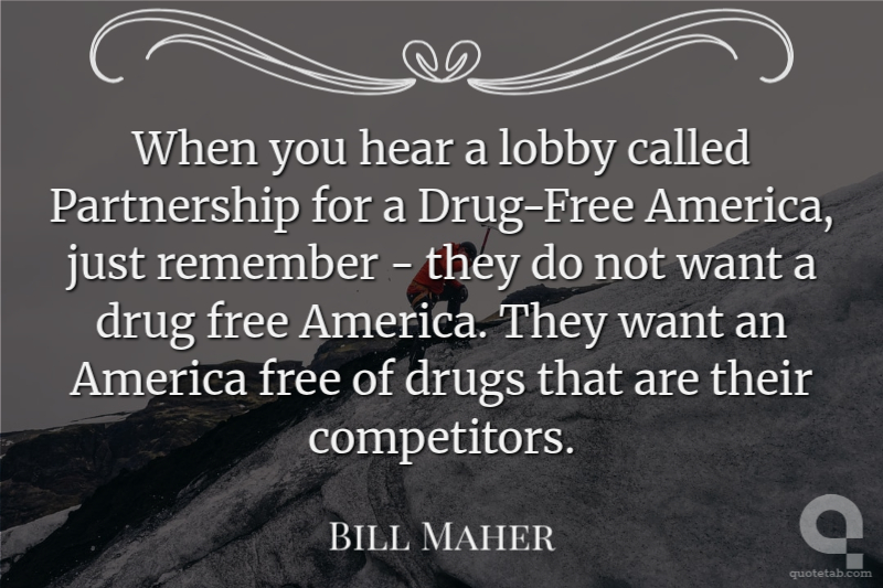 When you hear a lobby called Partnership for a Drug-Free America, just remember - they do not want a drug free America. They want an America free of drugs that are their competitors.