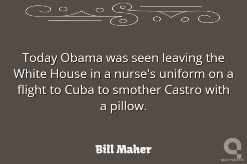 Today Obama was seen leaving the White House in a nurse's uniform on a flight to Cuba to smother Castro with a pillow.