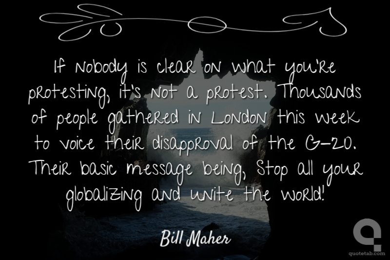If nobody is clear on what you're protesting, it's not a protest. Thousands of people gathered in London this week to voice their disapproval of the G-20. Their basic message being, Stop all your globalizing and unite the world!