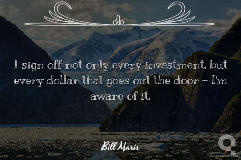 I sign off not only every investment, but every dollar that goes out the door - I'm aware of it.