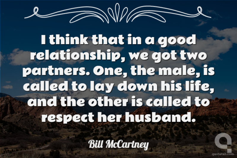 I think that in a good relationship, we got two partners. One, the male, is called to lay down his life, and the other is called to respect her husband.