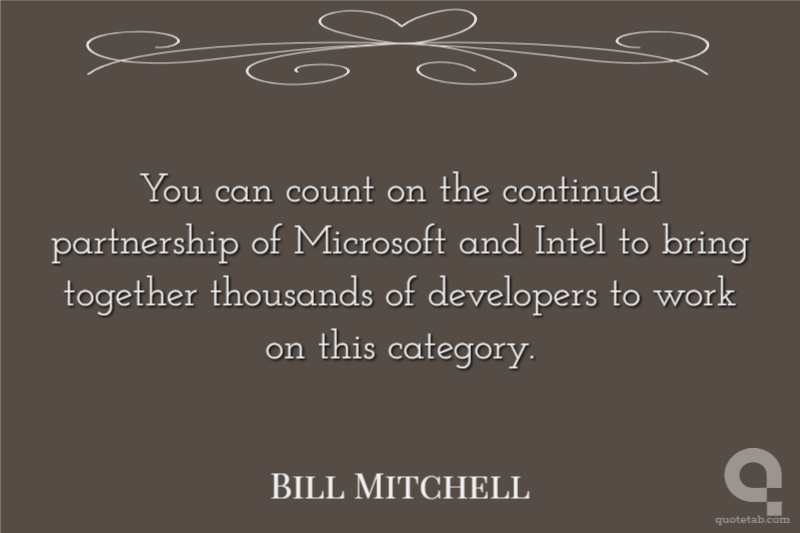 You can count on the continued partnership of Microsoft and Intel to bring together thousands of developers to work on this category.