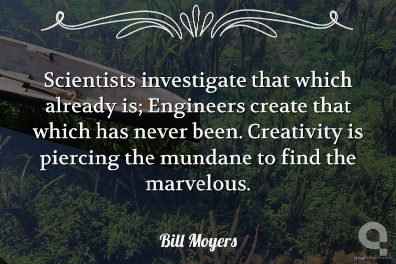 Scientists investigate that which already is; Engineers create that which has never been. Creativity is piercing the mundane to find the marvelous.
