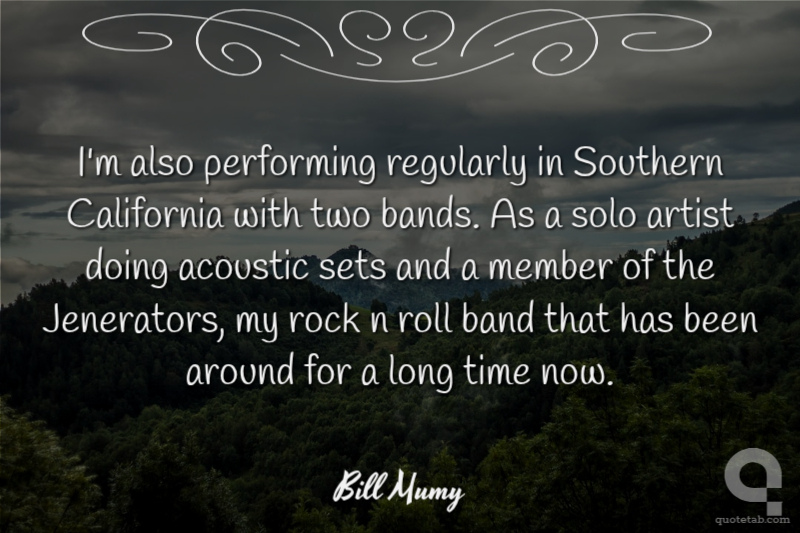 I'm also performing regularly in Southern California with two bands. As a solo artist doing acoustic sets and a member of the Jenerators, my rock n roll band that has been around for a long time now.