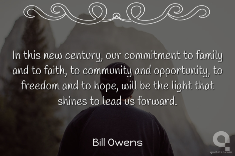 In this new century, our commitment to family and to faith, to community and opportunity, to freedom and to hope, will be the light that shines to lead us forward.