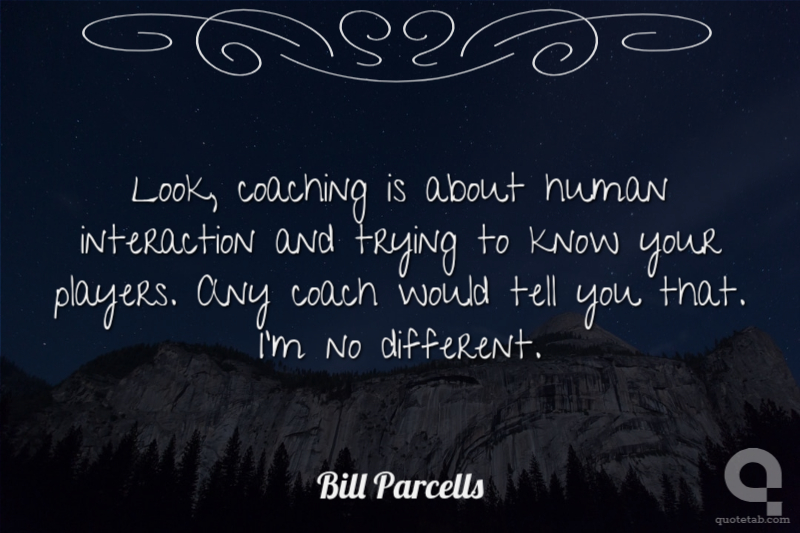 Look, coaching is about human interaction and trying to know your players. Any coach would tell you that. I'm no different.
