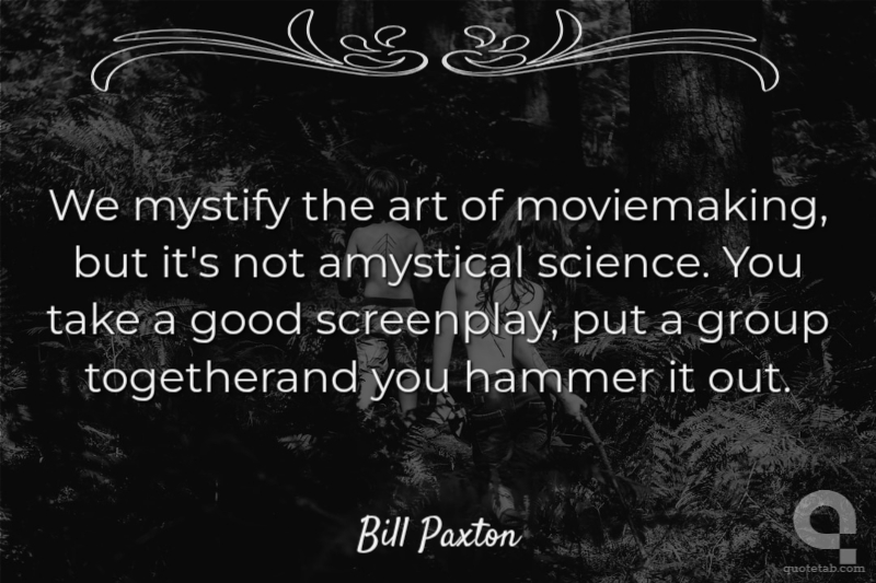 We mystify the art of moviemaking, but it's not amystical science. You take a good screenplay, put a group togetherand you hammer it out.
