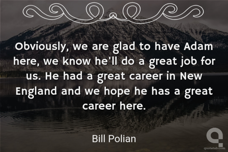 Obviously, we are glad to have Adam here, we know he'll do a great job for us. He had a great career in New England and we hope he has a great career here.