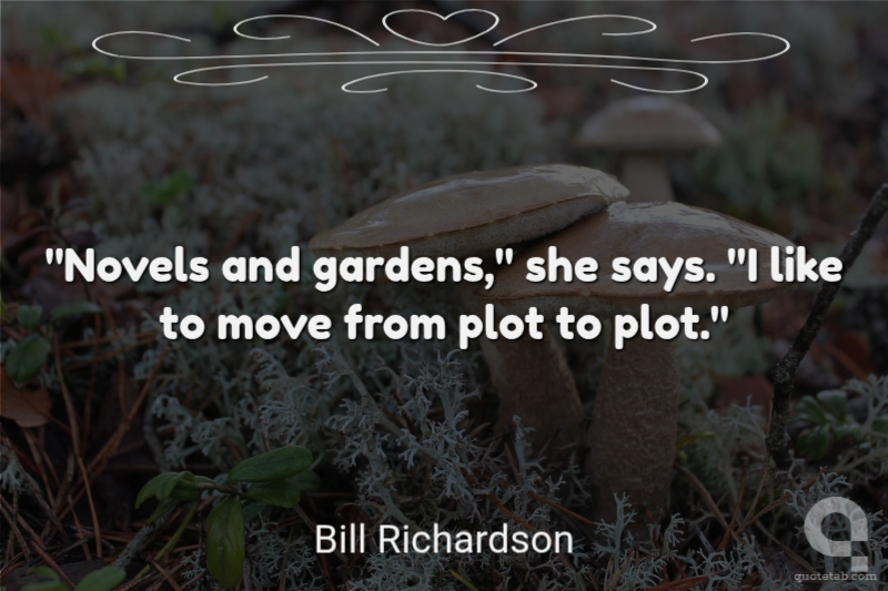 "Novels and gardens," she says. "I like to move from plot to plot."