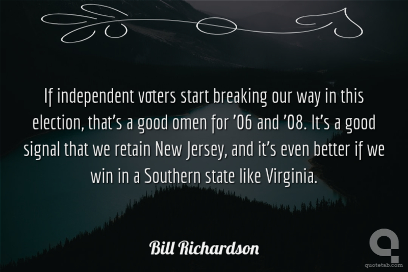 If independent voters start breaking our way in this election, that's a good omen for '06 and '08. It's a good signal that we retain New Jersey, and it's even better if we win in a Southern state like Virginia.