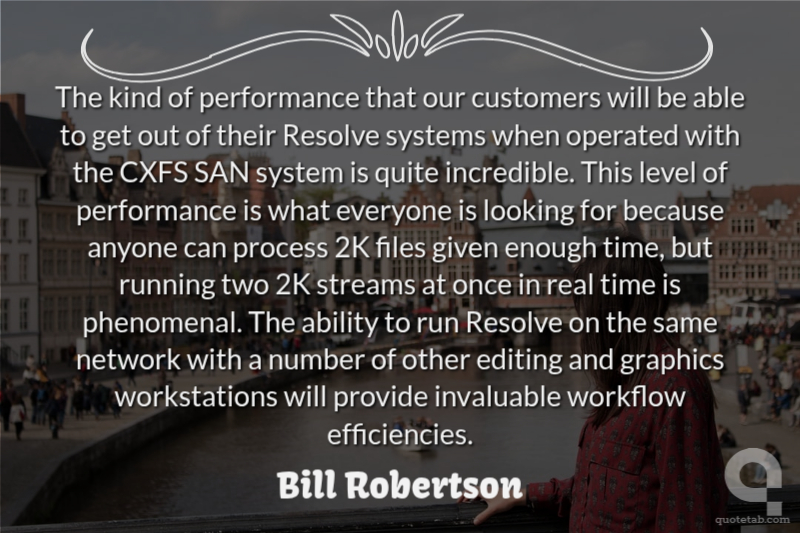 The kind of performance that our customers will be able to get out of their Resolve systems when operated with the CXFS SAN system is quite incredible. This level of performance is what everyone is looking for because anyone can process 2K files given enough time, but running two 2K streams at once in real time is phenomenal. The ability to run Resolve on the same network with a number of other editing and graphics workstations will provide invaluable workflow efficiencies.