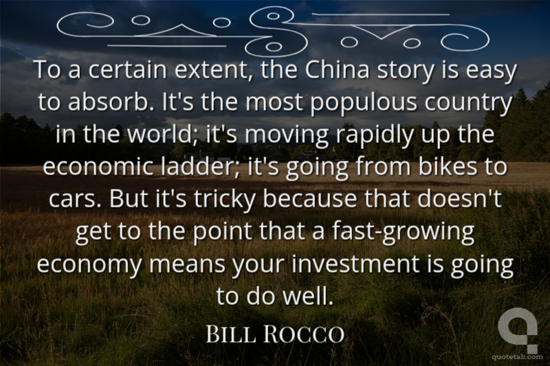 To a certain extent, the China story is easy to absorb. It's the most populous country in the world; it's moving rapidly up the economic ladder; it's going from bikes to cars. But it's tricky because that doesn't get to the point that a fast-growing economy means your investment is going to do well.
