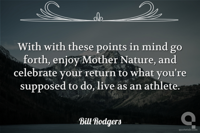 With with these points in mind go forth, enjoy Mother Nature, and celebrate your return to what you're supposed to do, live as an athlete.