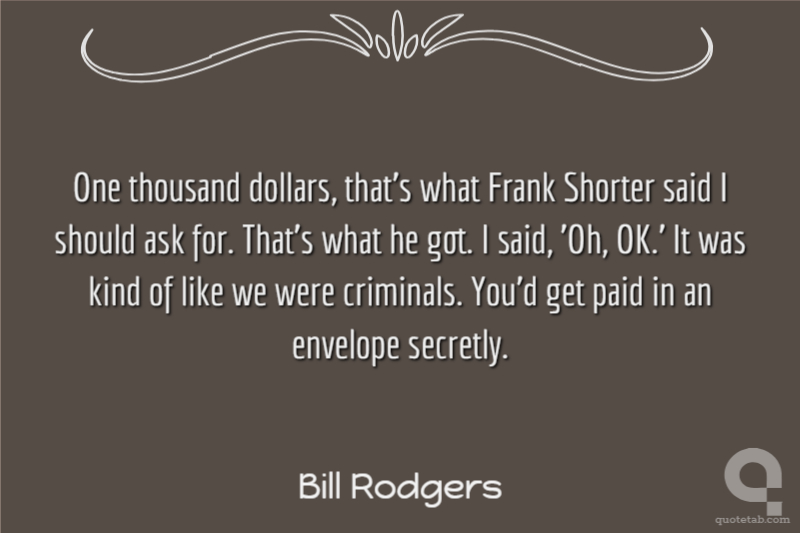 One thousand dollars, that's what Frank Shorter said I should ask for. That's what he got. I said, 'Oh, OK.' It was kind of like we were criminals. You'd get paid in an envelope secretly.