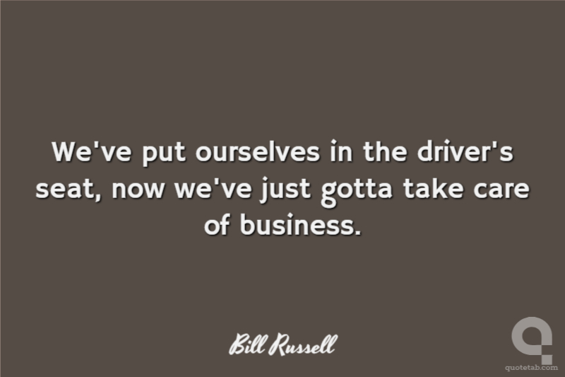 We've put ourselves in the driver's seat, now we've just gotta take care of business.