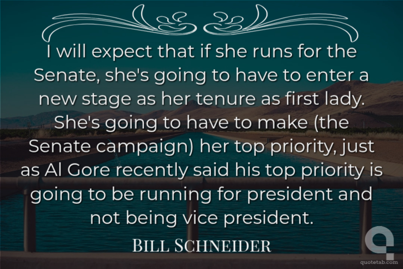 I will expect that if she runs for the Senate, she's going to have to enter a new stage as her tenure as first lady. She's going to have to make (the Senate campaign) her top priority, just as Al Gore recently said his top priority is going to be running for president and not being vice president.