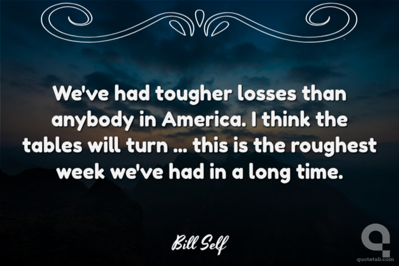 We've had tougher losses than anybody in America. I think the tables will turn ... this is the roughest week we've had in a long time.
