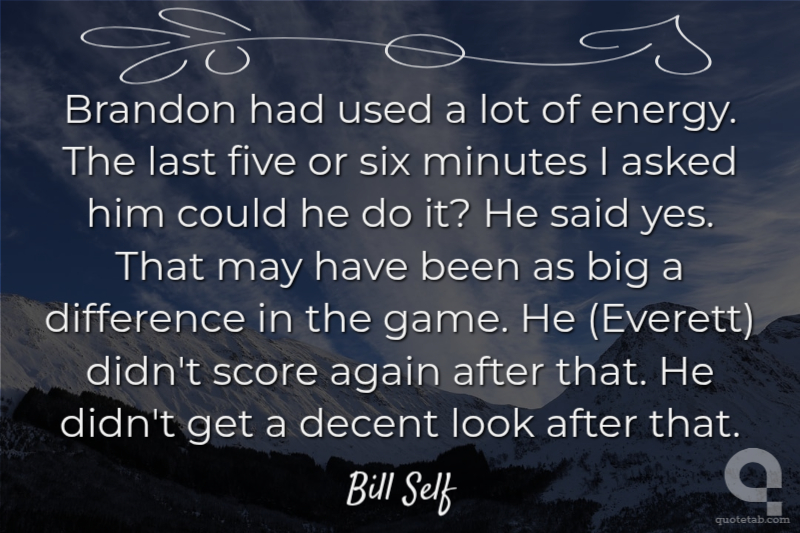 Brandon had used a lot of energy. The last five or six minutes I asked him could he do it? He said yes. That may have been as big a difference in the game. He (Everett) didn't score again after that. He didn't get a decent look after that.