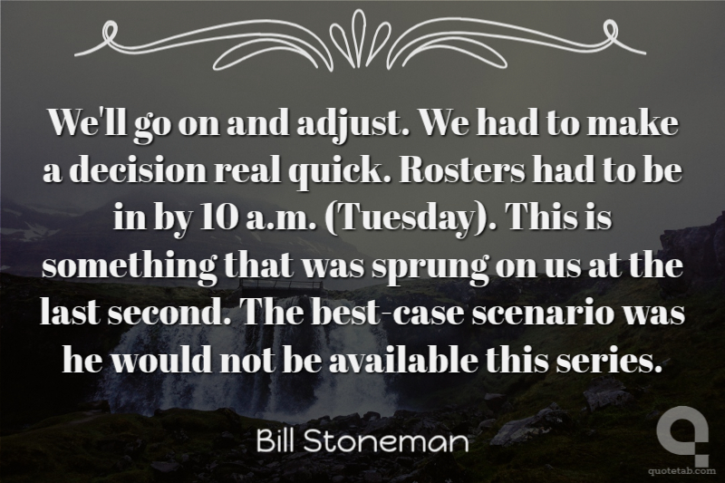We'll go on and adjust, ... We had to make a decision real quick. Rosters had to be in by 10 a.m. (Tuesday). This is something that was sprung on us at the last second. The best-case scenario was he would not be available this series.
