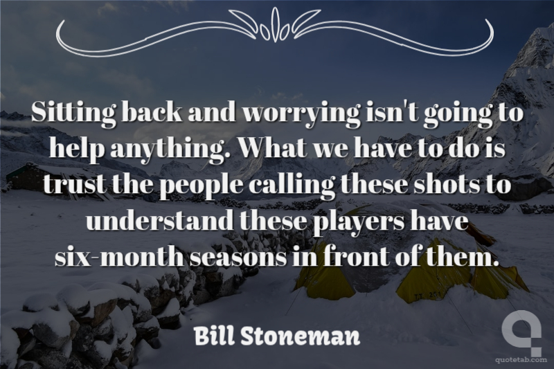 Sitting back and worrying isn't going to help anything. What we have to do is trust the people calling these shots to understand these players have six-month seasons in front of them.